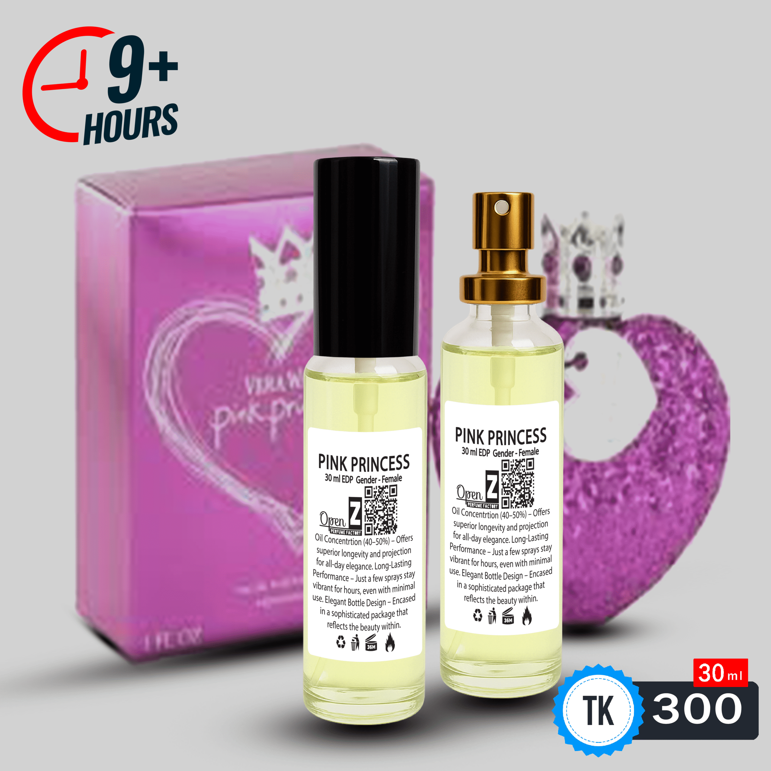 নরম পিঙ্ক ফুলের সুবাস আর মিষ্টি ভ্যানিলার হালকা ছোঁয়ায় তৈরি এই পারফিউম যেন এক আধুনিক রাজকন্যার গল্প বলে। প্রতিটি ফোঁটায় লুকিয়ে আছে আত্মবিশ্বাস, কোমলতা আর মোহ।